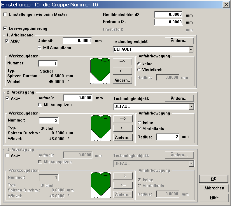 3. Einstellung der Werkzeugdaten / Gruppen