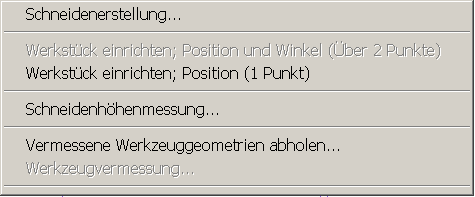 Ist eine DIN-Steuerung angewählt, ist dieser Punkt grau, der Punkt darüber ist aktiv. Bei einer DIN-Steuerung erfolgt nicht automatisch das Einlesen der Messwerte von der Steuerung, es kann eine von der DIN-Steuerung zur Verfügung gestellte Datei mit den Messdaten der Werkzeuge eingelesen werden.