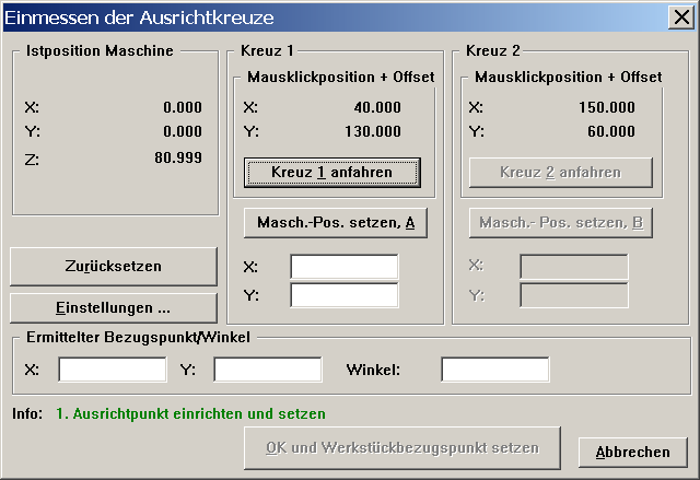 Mit dem Button "OK und Werkstückbezugspunkt setzen" wird der Dialog beendet, der