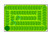 Das Beispiel können Sie als "bsp-kugel.wst" laden. Dort ist noch ein Kreis definiert um die Räumbahnen im Bereich der Kugel konzentrisch zu erzeugen. Auf der Kugel wird zum Abschluss ein Text erzeugt.