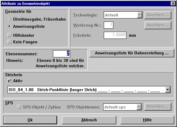 Geometrieobjekten (hier wird z.B. auch die Nummer der gewünschten Ebene