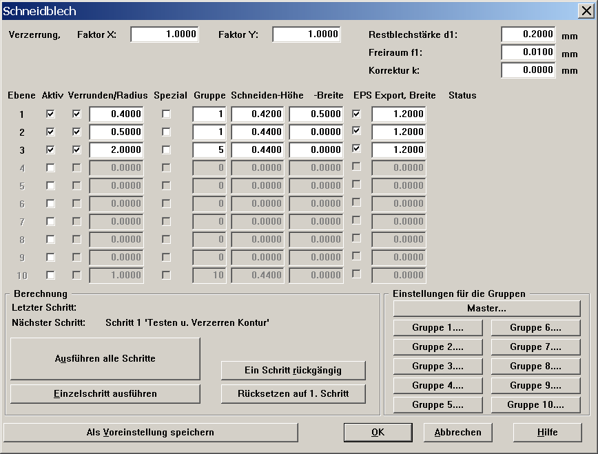 Erklärt wird die Arbeitsweise mit BESgrav bei der Herstellung von Schneidblechen an Hand von einigen Beispielen.